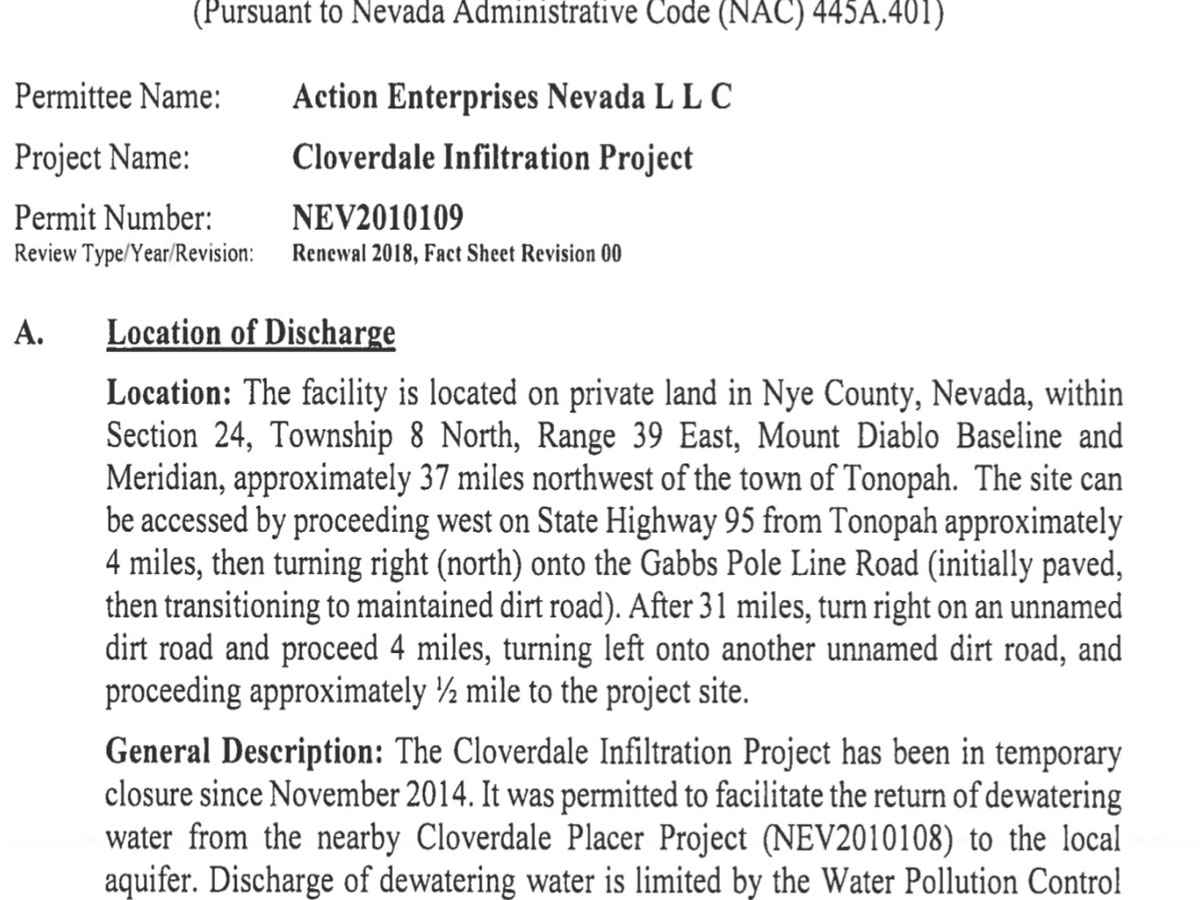 The property has ample water rights, permitted to discharge "up to 1,000,000 gallons per day, from dewatering pipes" (in NI 43-101 report), there are 20 acre feet of "deeded" water rights. The drought does not seem to affect this water supply. There were 4 monitoring wells which had been tested every 90 days, when plant was operating. This report is effective as of July 2018 (reviewed and update January 2023).