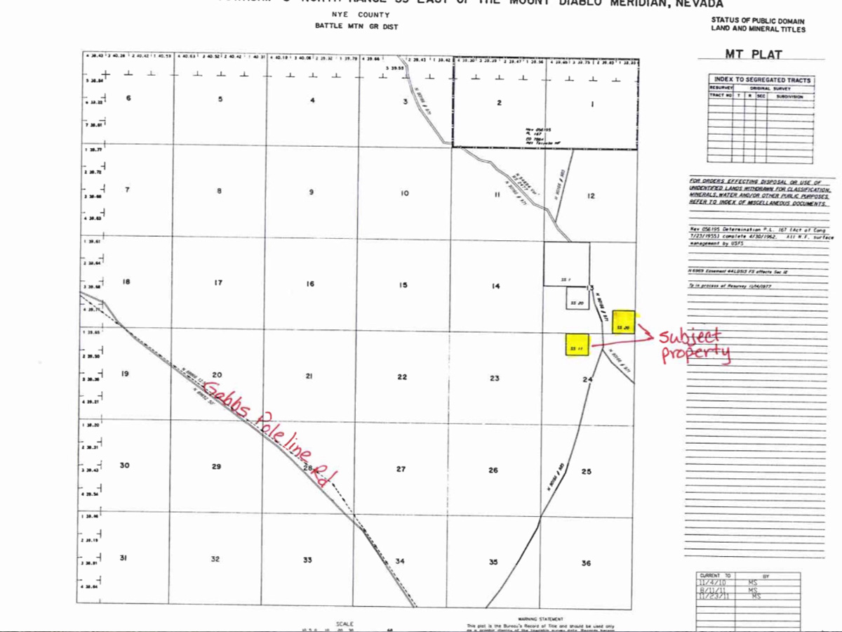OTHER MINES: Property is located within 30 miles of Manhatten mine and Round Mountain Mine. These mines have recovered over 20,000,000 Oz Au of Gold.